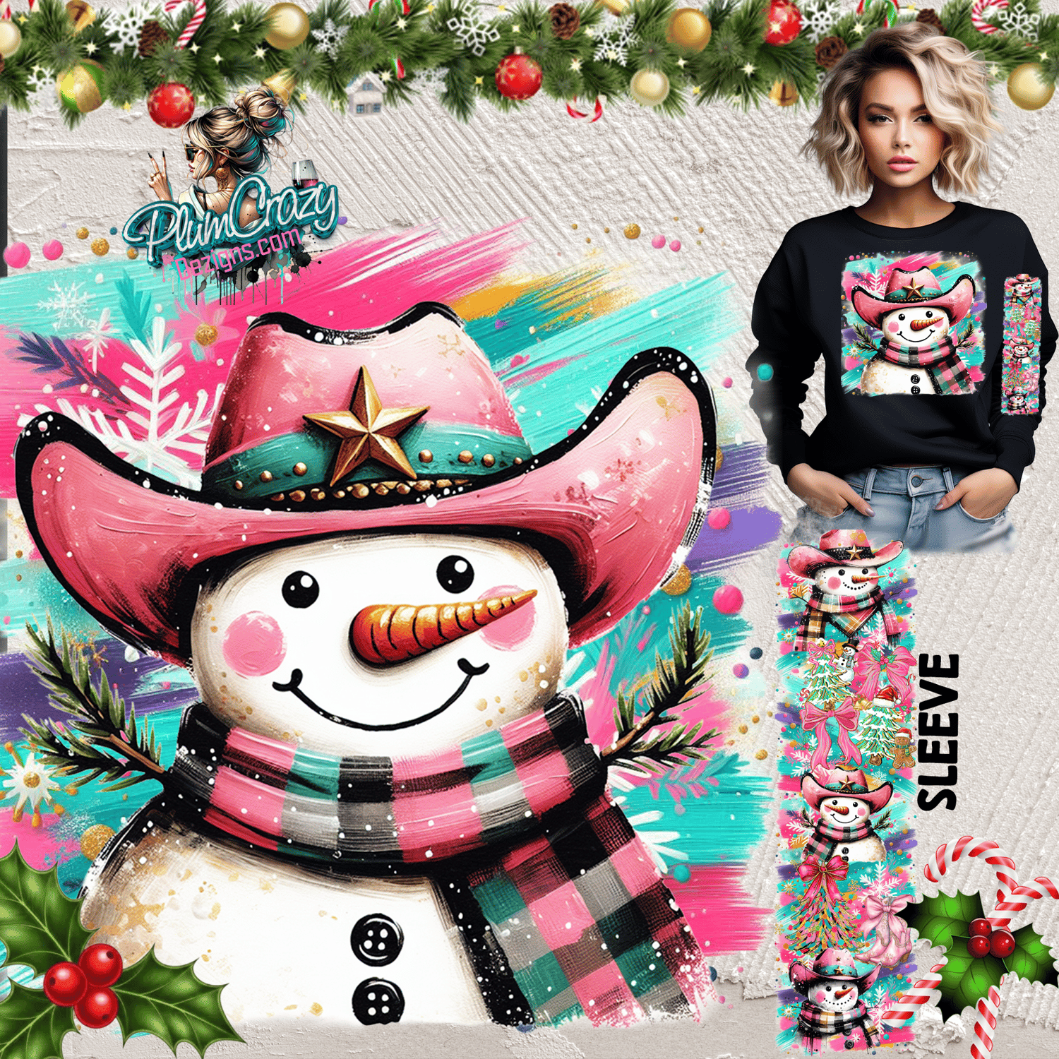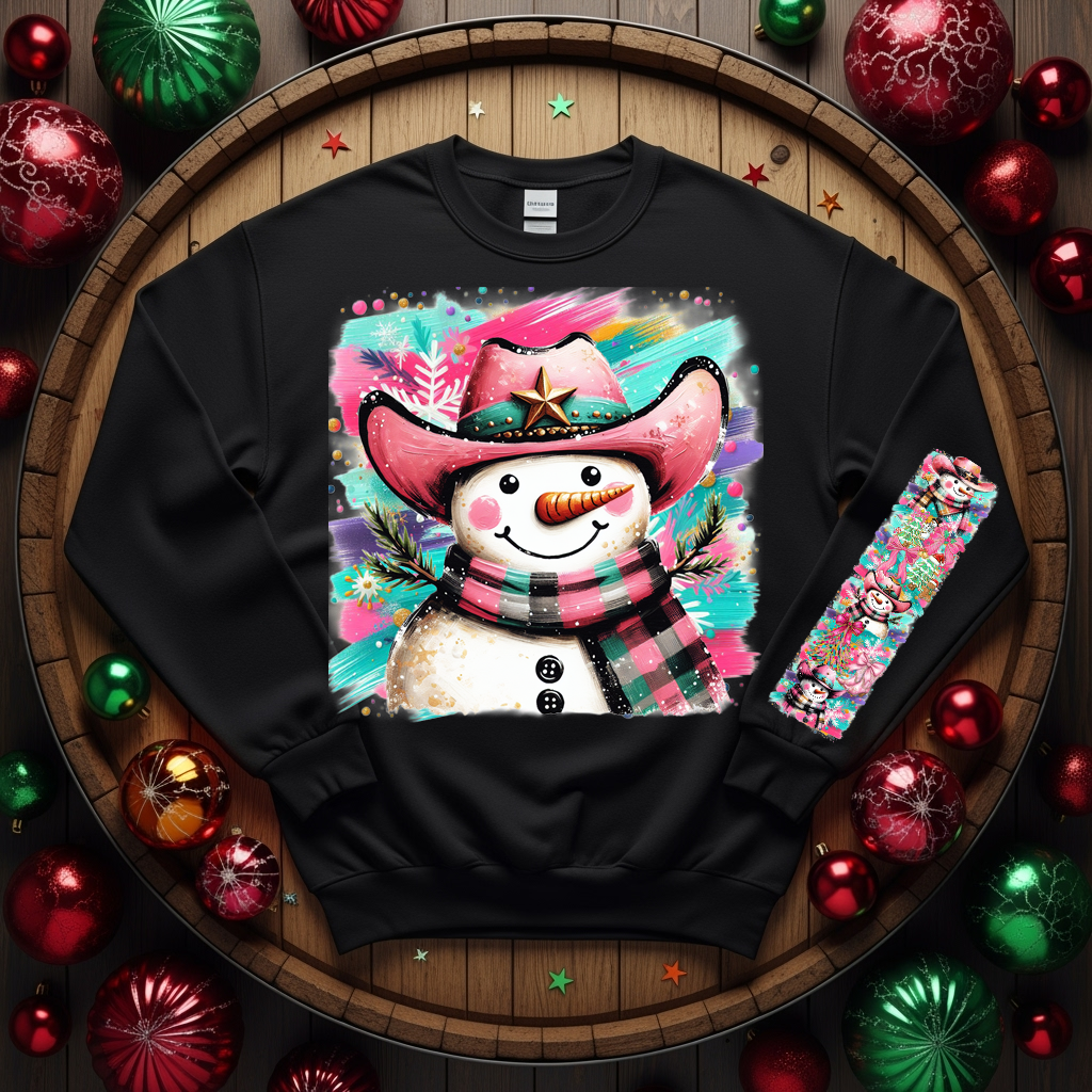 Preppy Christmas Cowboy Snowman PNG with Sleeve Design, Digital Download 300 DPI