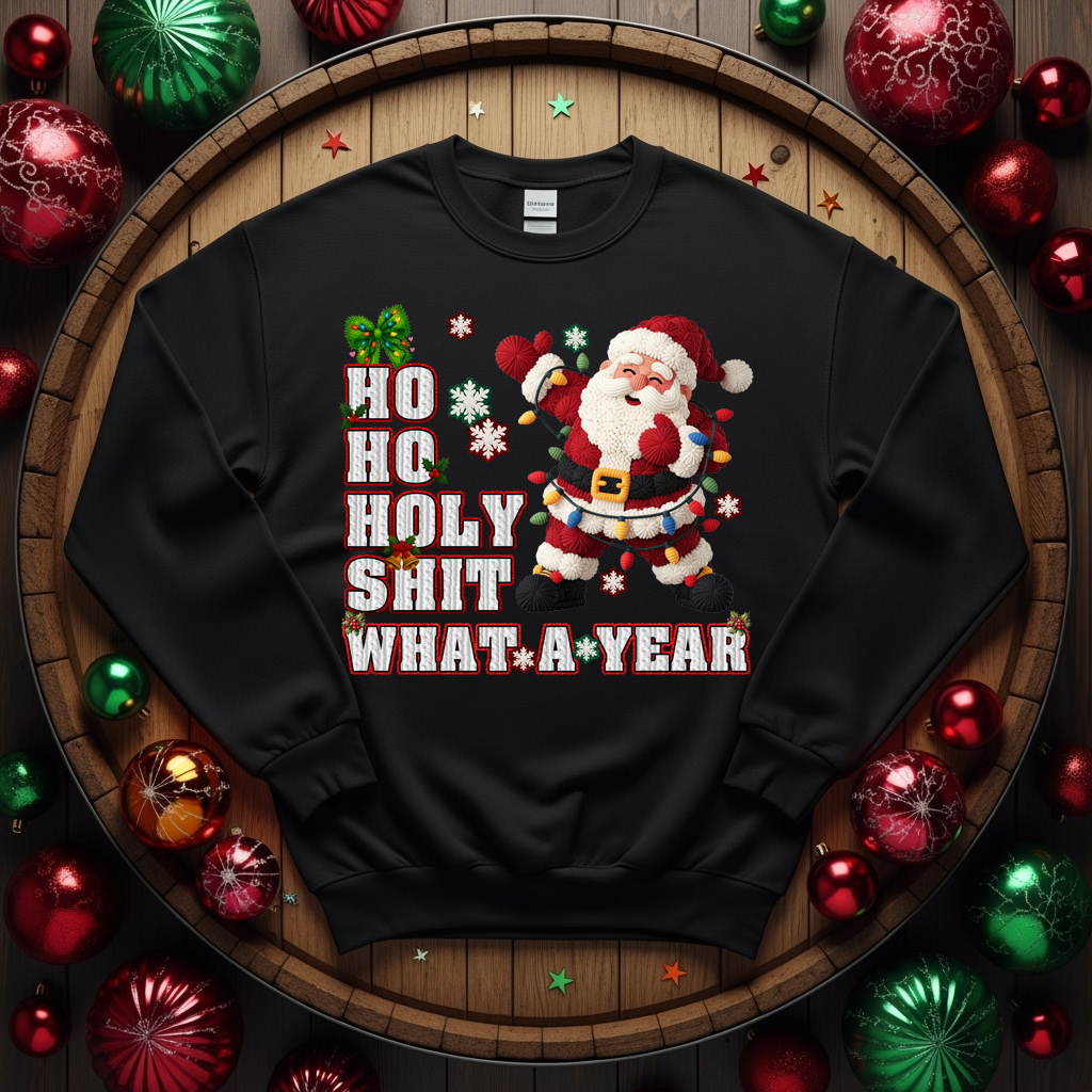 Digital Faux Yarn Santa PNG, Ho Ho Holy Shit What A Year, 300dpi High Resolution, Instant Download, Funny Christmas Clipart, Holiday Season